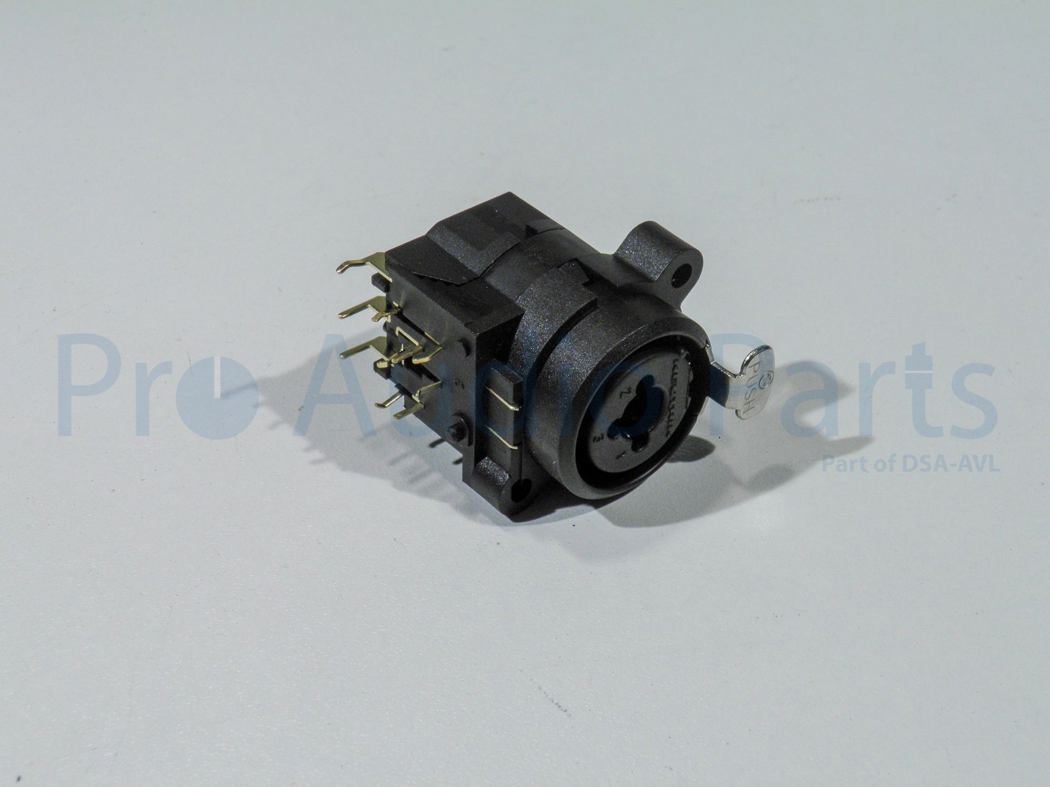 Neutrik NCJ9 FIH 3 pole XLR female receptacle with 1/4″ switching stereo jack, horizontal PCB mount
